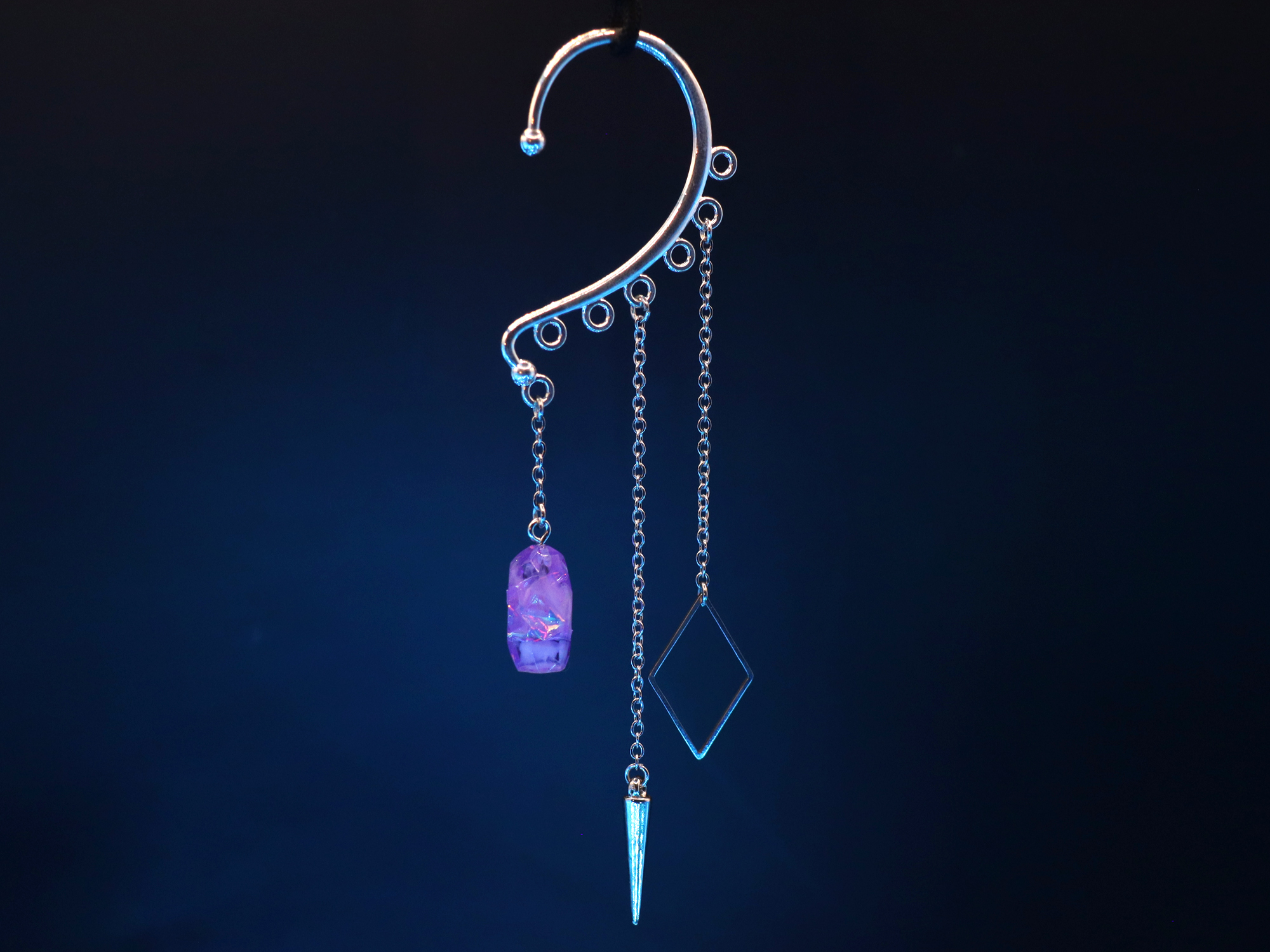 Add a touch of fantasy to your look with this beautiful ear cuff, adorned with a resin crystal. The cuff is shaped to fit around either of your ears without the need for piercing.